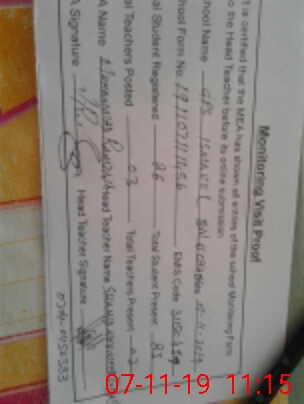 | Certified that this School was Inspected by the Undersigned MEA/DMO Today and the Information Stated Above is as Per Record. | |||||