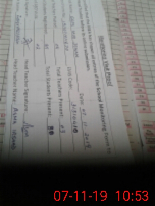 | Monitoring Date: 07-11-2019 | Start Time: 07-11-2019 10:11 AM | End Time: 07-11-2019 11:32 AM | Name of MEA: Za**** Hu**** | |