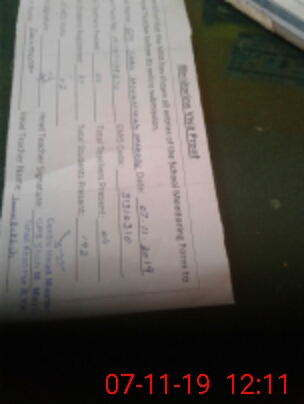 | School Visited by School Health & Nutrition Supervisor (No. of Visits) | 1 | Name1: | Gullu Ram | Name2: | None |