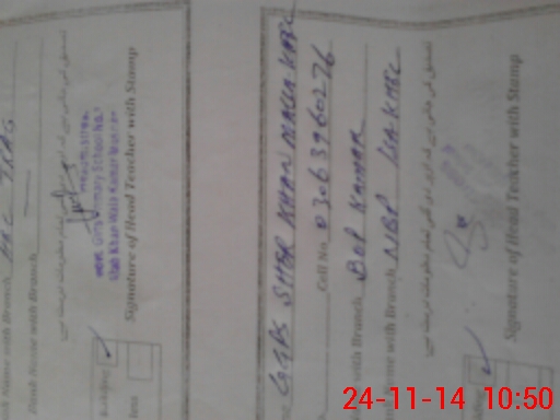 | Name: Hi**** Bi**** Designation: (School Headmaster's/Headmistress's) PST Phone/Cell Number: 03**** |