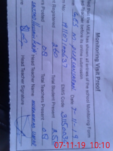 | Certified that this School was Inspected by the Undersigned MEA/DMO Today and the Information Stated Above is as Per Record. | |||||