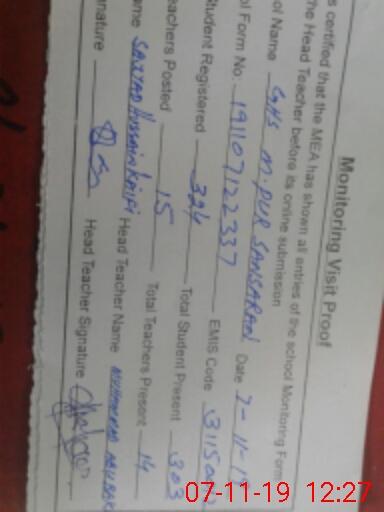 | Certified that this School was Inspected by the Undersigned MEA/DMO Today and the Information Stated Above is as Per Record. | |||||