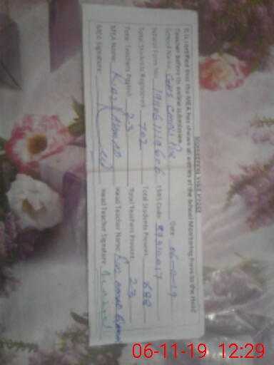 | Certified that this School was Inspected by the Undersigned MEA/DMO Today and the Information Stated Above is as Per Record. | |||||