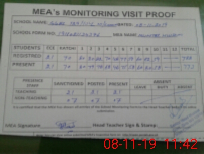 | Attendance Register | Head Teacher | MEA with School | Visit Proof |