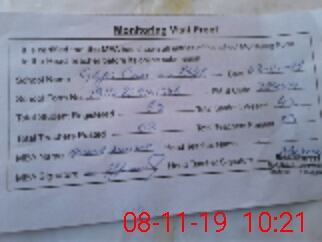 | Monitoring Date: 08-11-2019 | Start Time: 08-11-2019 09:14 AM | End Time: 08-11-2019 10:21 AM | Name of MEA: NA**** AH**** BN**** | |