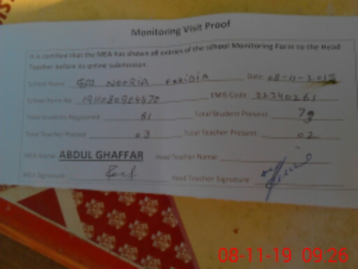 | EMIS Code: 32340261 | Name of School: GPS NOORIA FARIDIA | |||