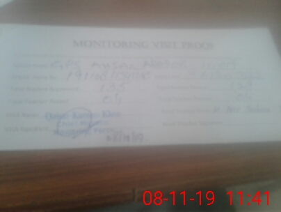 | Certified that this School was Inspected by the Undersigned MEA/DMO Today and the Information Stated Above is as Per Record. | |||||