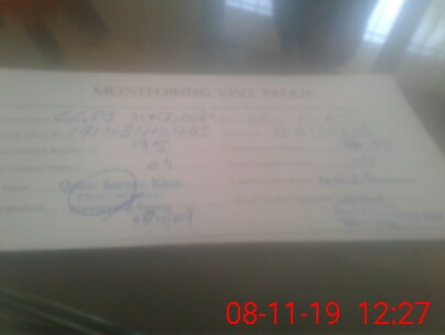 | Monitoring Date: 08-11-2019 | Start Time: 08-11-2019 12:01 PM | End Time: 08-11-2019 12:27 PM | Name of MEA: Qa**** Ka**** Kh**** | |