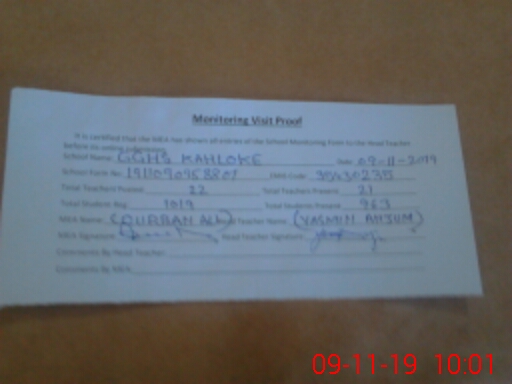 | Attendance Register | Head Teacher | MEA with School | Visit Proof |