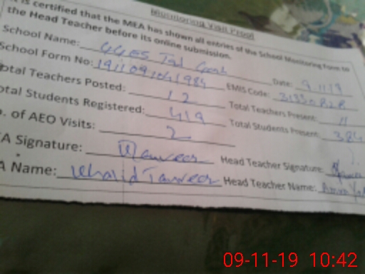 | Certified that this School was Inspected by the Undersigned MEA/DMO Today and the Information Stated Above is as Per Record. | |||||