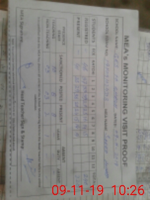 | Attendance Register | Head Teacher | MEA with School | Visit Proof |