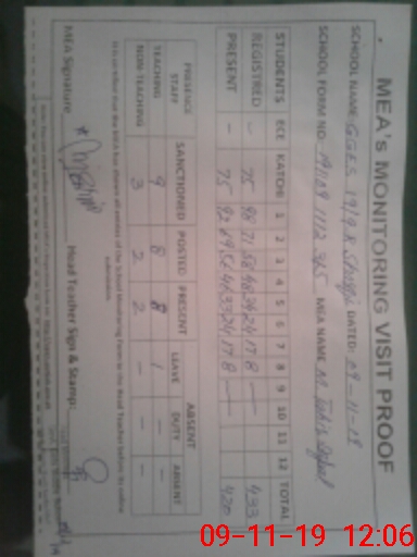 | Monitoring Date: 09-11-2019 | Start Time: 09-11-2019 11:11 AM | End Time: 09-11-2019 12:09 PM | Name of MEA: M.Ta**** Iq**** (S**** | |