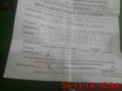 | Attendance Register | Head Teacher | MEA with School | Visit Proof |