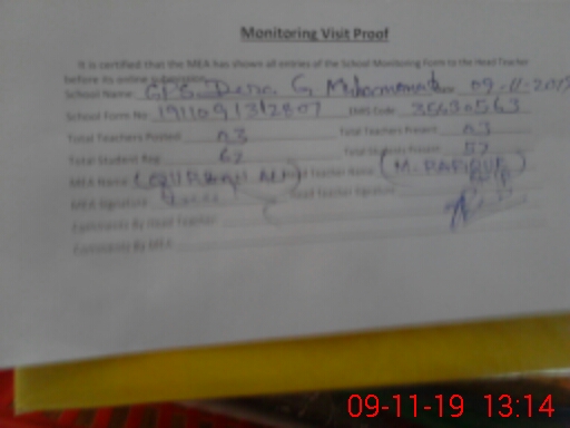 | Certified that this School was Inspected by the Undersigned MEA/DMO Today and the Information Stated Above is as Per Record. | |||||