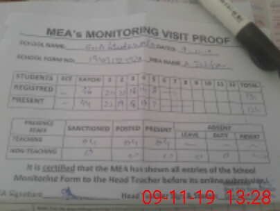 | Attendance Register | Head Teacher | MEA with School | Visit Proof |