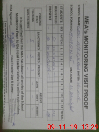 | Certified that this School was Inspected by the Undersigned MEA/DMO Today and the Information Stated Above is as Per Record. | |||||
