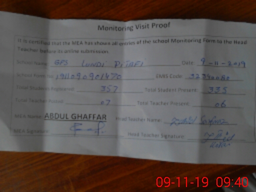| EMIS Code: 32340080 | Name of School: GPS LUNDI PITAFI | |||