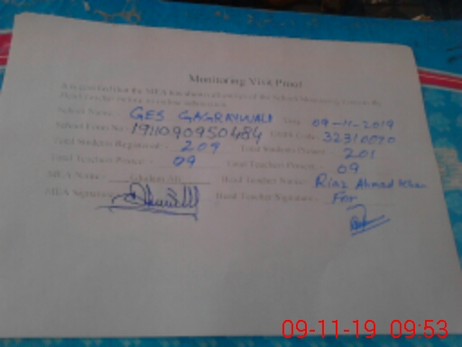 | Monitoring Date: 09-11-2019 | Start Time: 09-11-2019 09:15 AM | End Time: 09-11-2019 09:54 AM | Name of MEA: Gh**** Al**** | |