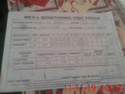 | Attendance Register | Head Teacher | MEA with School | Visit Proof |