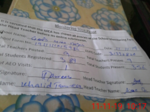 | Attendance Register | Head Teacher | MEA with School | Visit Proof |