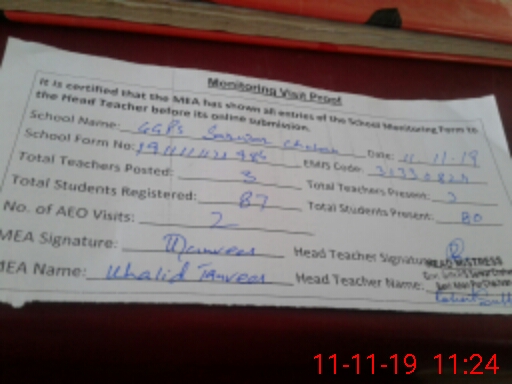 | EMIS Code: 31330824 | Name of School: GGPS SARWAR CHUHAN | |||