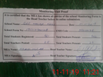 | Attendance Register | Head Teacher | MEA with School | Visit Proof |