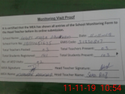 | Certified that this School was Inspected by the Undersigned MEA/DMO Today and the Information Stated Above is as Per Record. | |||||