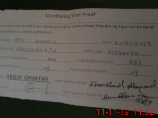 | Certified that this School was Inspected by the Undersigned MEA/DMO Today and the Information Stated Above is as Per Record. | |||||