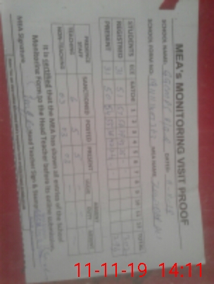 | Attendance Register | Head Teacher | MEA with School | Visit Proof |