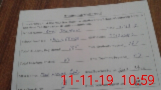 | Monitoring Date: 11-11-2019 | Start Time: 11-11-2019 10:40 AM | End Time: 11-11-2019 11:00 AM | Name of MEA: J-**** MU**** NA**** SA**** | |