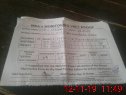 | Attendance Register | Head Teacher | MEA with School | Visit Proof |