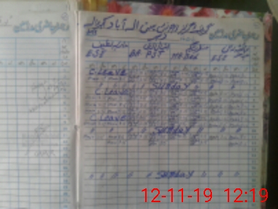 | CNIC | Full Name | Designation | R/C | Absence During Last Calender Month |