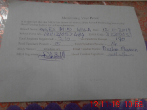| EMIS Code: 32310031 | Name of School: GGES MUD WALA | |||