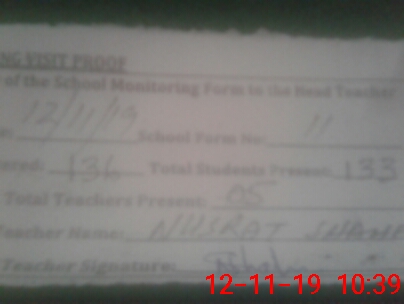 | Attendance Register | Head Teacher | MEA with School | Visit Proof |