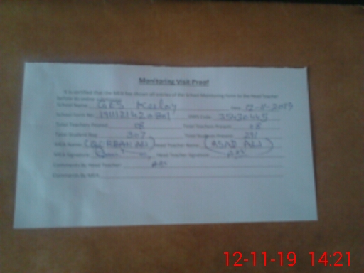 | Attendance Register | Head Teacher | MEA with School | Visit Proof |