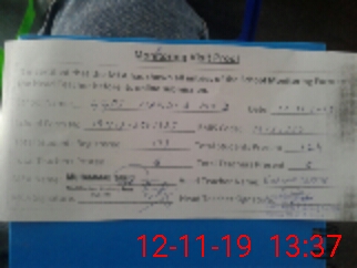 | Monitoring Date: 12-11-2019 | Start Time: 12-11-2019 12:50 PM | End Time: 12-11-2019 01:41 PM | Name of MEA: MU**** TA**** | |