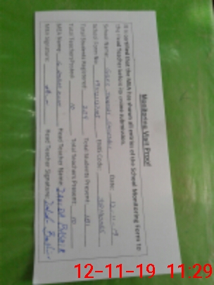 | Attendance Register | Head Teacher | MEA with School | Visit Proof |