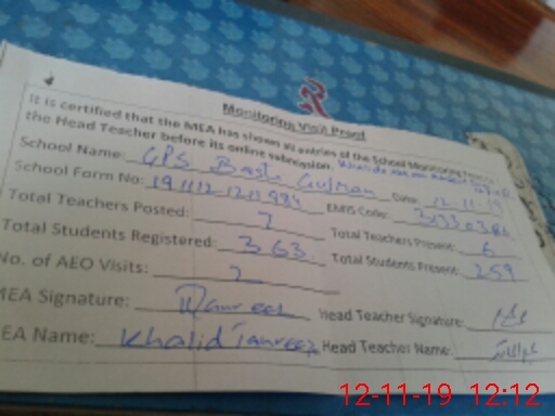 | EMIS Code: 31330386 | Name of School: GPS BASTI GUJRAN | |||