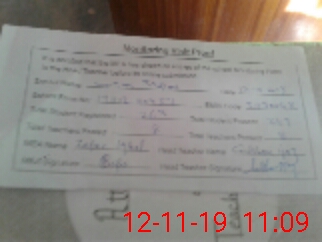 | Attendance Register | Head Teacher | MEA with School | Visit Proof |
