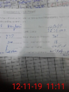 | Monitoring Date: 12-11-2019 | Start Time: 12-11-2019 10:53 AM | End Time: 12-11-2019 11:11 AM | Name of MEA: Mo**** Sa**** (R**** | |