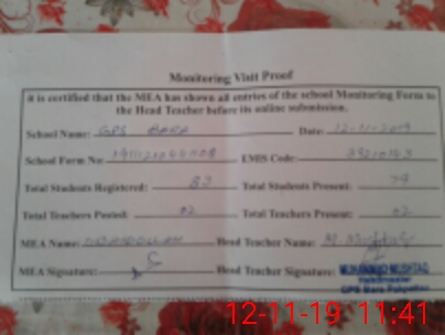 | Certified that this School was Inspected by the Undersigned MEA/DMO Today and the Information Stated Above is as Per Record. | |||||