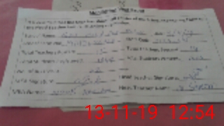 | Monitoring Date: 13-11-2019 | Start Time: 13-11-2019 11:38 AM | End Time: 13-11-2019 12:58 PM | Name of MEA: No**** Ha**** | |