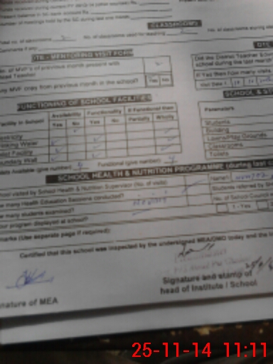 | Attendance Register | Head Teacher | MEA with School | Visit Proof |