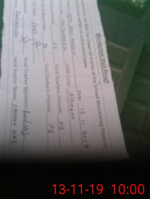| Attendance Register | Head Teacher | MEA with School | Visit Proof |