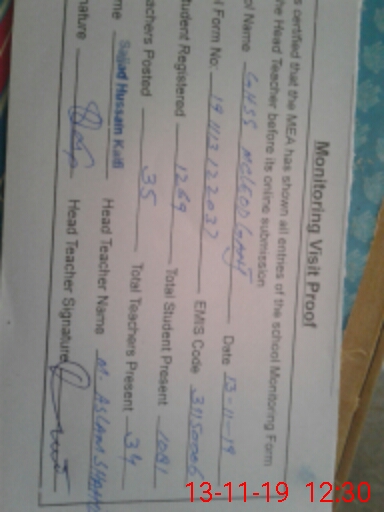 | Certified that this School was Inspected by the Undersigned MEA/DMO Today and the Information Stated Above is as Per Record. | |||||