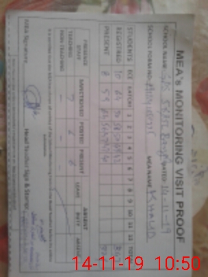 | Monitoring Date: 14-11-2019 | Start Time: 14-11-2019 09:09 AM | End Time: 14-11-2019 10:51 AM | Name of MEA: Kh**** Me**** | |