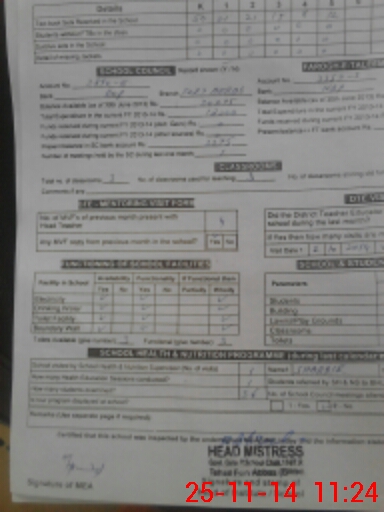| School Visited by School Health & Nutrition Supervisor (No. of Visits) | 1 | Name1: | Shabbir | Name2: | O |