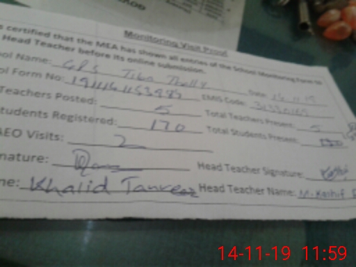 | Attendance Register | Head Teacher | MEA with School | Visit Proof |