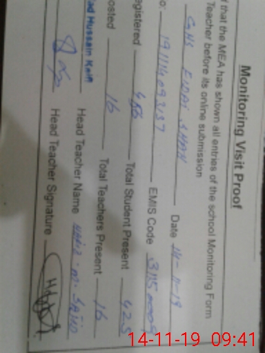 | Certified that this School was Inspected by the Undersigned MEA/DMO Today and the Information Stated Above is as Per Record. | |||||