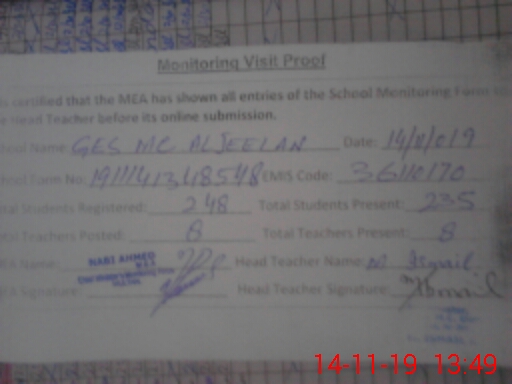 | EMIS Code: 36110170 | Name of School: GES MC AL-JEELLAN WALA MULTAN | |||